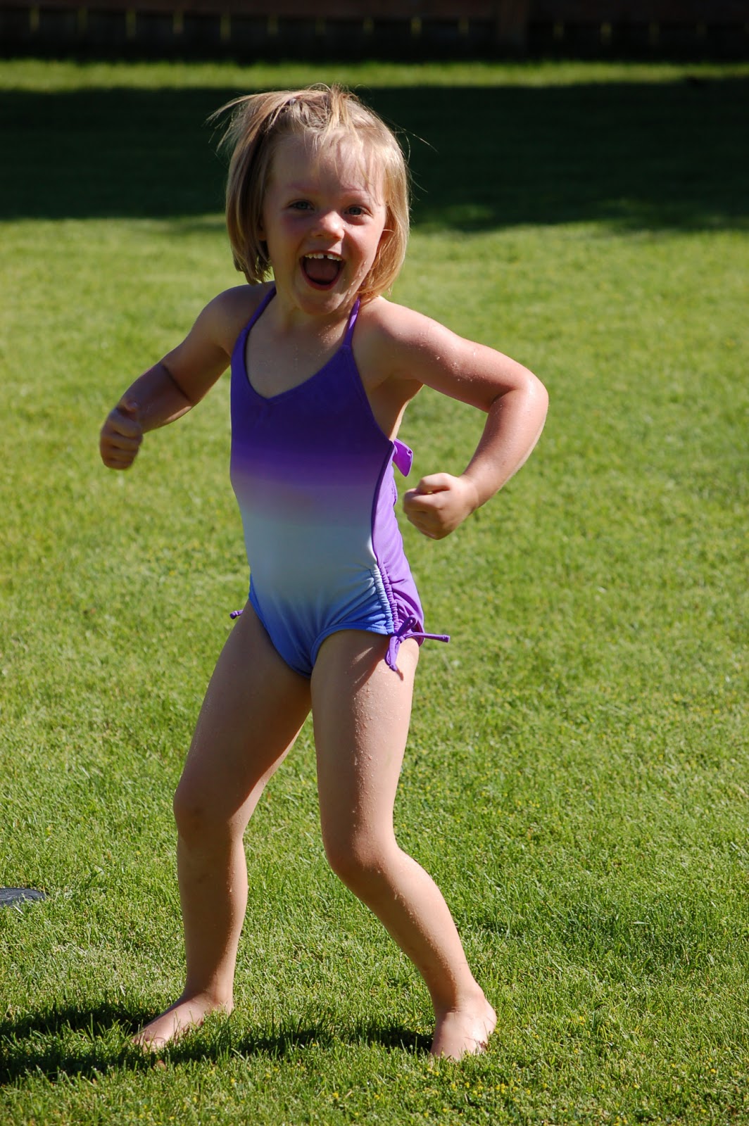 "OK Mom, you said we would do something fun and then you turned a sprinkler on by the slide!"